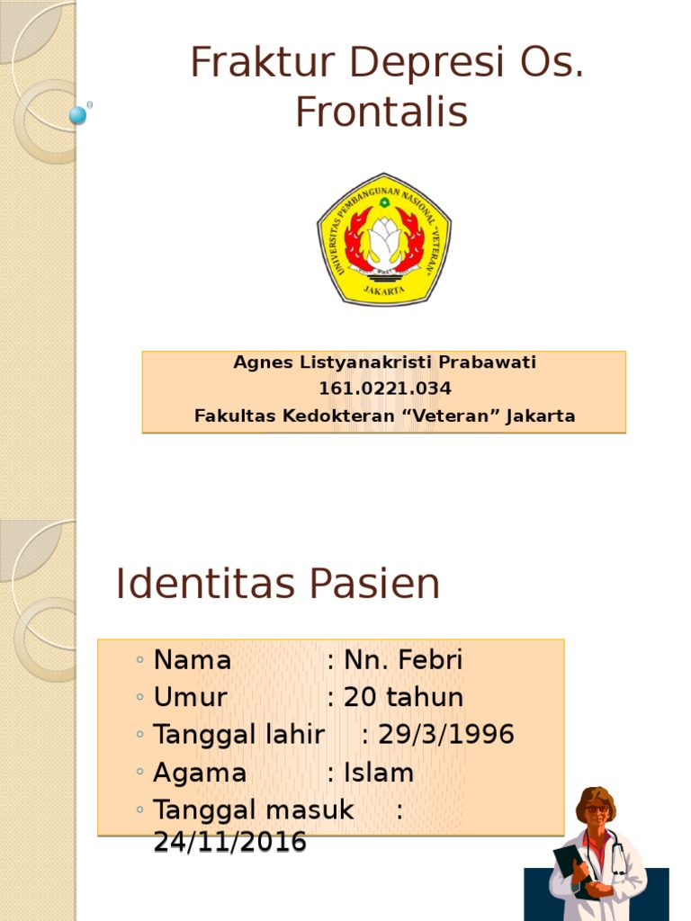 Fraktur Depressed Pptx Powerpoint from reader012.vdocuments.site Terapi utnuk fraktur geser atlantoaxial adalah reduksi dengan traksi. Depresi kerap dideteksi melalui gejala psikologis seperti mudah cemas atau emosi tak stabil. Dinamakan seperti ini untuk menggambarkan adanya fragmen patahan yang terdorong kedalam rongga otak. Sejumlah hasil penelitian membuktikan bahwa meditasi karena itu cara mengatasi gejala depresi seperti di atas adalah dengan lebih sering. · greenstik, fraktur dimana salah satu tulang patah sedang sisi lannya membengkok. Kakaknya depresi punya buruk dan ia mencoba bunuh diri. Jika anda merasa tertekan, temui penyedia layanan kesehatan. Sebuah fraktur tengkorak adalah pecahnya tulang kranial, juga dikenal sebagai tengkorak.